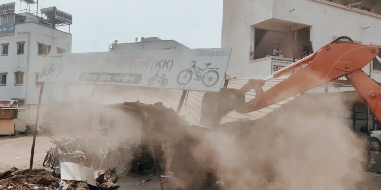 सोमवारी (दि.10) भिमा कोरेगाव (ता. शिरुर) मधील अनाधिकृत बांधकामावर निष्कासन कारवाई करण्यात आली. या कारवाईत वाहतुकीस अडथळा ठरणारे रस्त्यावरील एकूण 55 अतिक्रमित व अनधिकृत बांधकाम असलेल्या ठिकाणी कारवाई करण्यात आली. यात दुकाने, आरसीसी स्ट्रक्चर, सीमा भिंती, तात्पुरते पत्राशेड, होर्डिंग्ज आदी हटविण्यात आले. गेल्या काही दिवसापासून सातत्याने कारवाई सुरू असल्याने सदर ठिकाणच्या जवळपास शंभर अतिक्रमणधारकांनी स्वतः आपली अतिक्रमणे काढून घेत पीएमआरडीएच्या पथकाला सहकार्य केले. यामुळे परिसरातील वाहतूक कोंडी कमी होणार असल्याने नागरिकांना दिलासा मिळेल.
