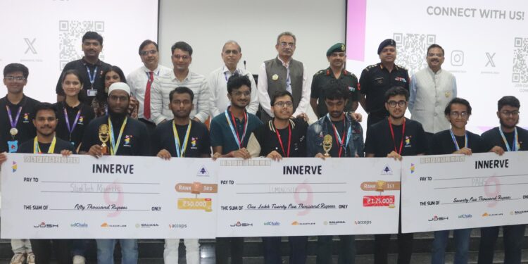 पुणे: आर्मी इन्स्टिट्यूट ऑफ टेक्नॉलॉजीच्या (एआयटी) ओपन सोर्स सॉफ्टवेअर क्लबच्या वतीने आयोजित ‘इनर्व्ह ९.०’ या भारतातील सर्वात मोठ्या विद्यार्थी-प्रेरित राष्ट्रीय हाकेथॉनचे विजेतेपद बंगळुरू येथील दयानंद सागर कॉलेज ऑफ इंजिनिअरिंगच्या संघाने यांनी पटकविले. विवेक अगरवाल, नमन पार्लेचा, भुवन एम., मोहित नागराज यांच्या संघाने ओपन इनोव्हेशन कॅटेगरीमध्ये लुमिनोसिटी प्रकल्प सादर केला. विजेत्या संघाला रोख १,२५,०००/- चे पारितोषिक व सन्मानपत्र देण्यात आले.