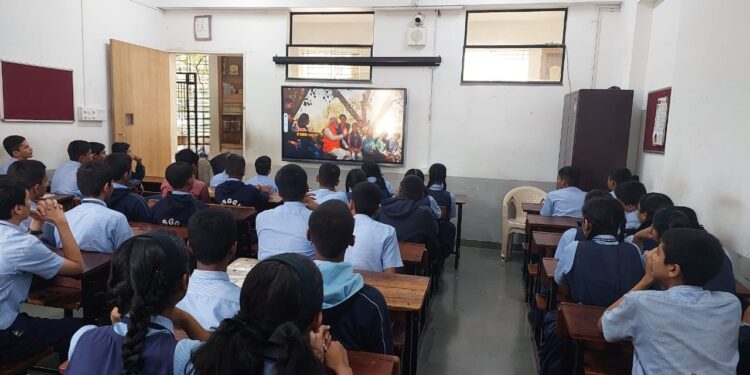 गोळवलकर गुरुजी माध्यमिक विद्यालयात परीक्षा पे चर्चा या कार्यक्रमाचे प्रक्षेपण